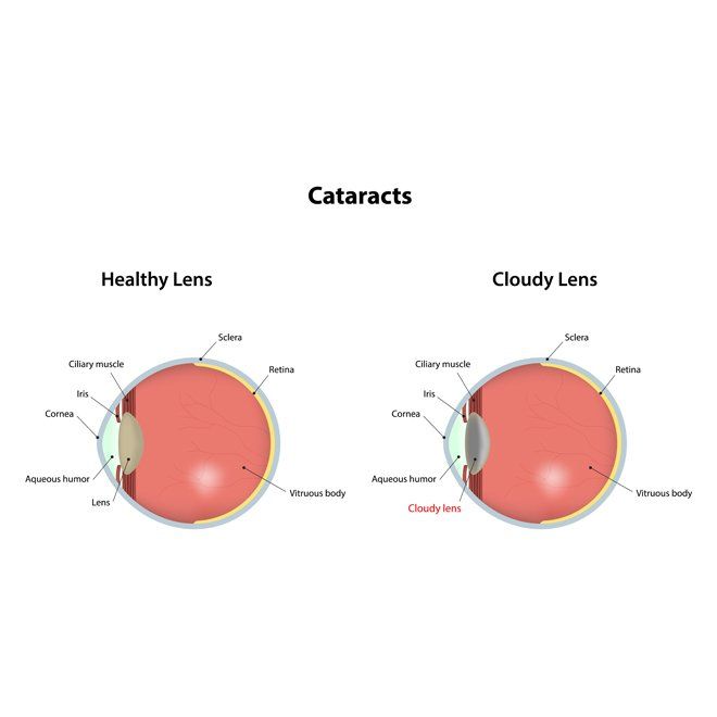 Cataract is a clouding of the lens in your eye and can develop in both or just one eye. The lens that is affected by cataract sits behind the iris which is the coloured part of the eye, this lens is usually clear and helps you focus light to produce sharp images on the back of the eye, the retina. The lens becomes less transparent which leaves you with cloudy and misty vision.