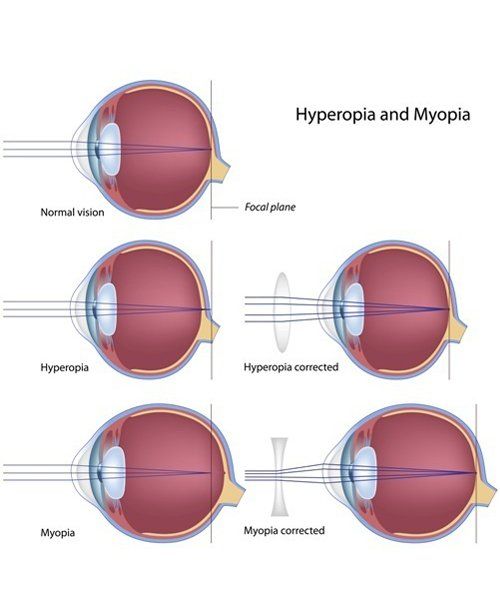 As a result light waves will focus behind the retina rather than on it. Hyperopia can be corrected by prescription glasses or contact lenses.